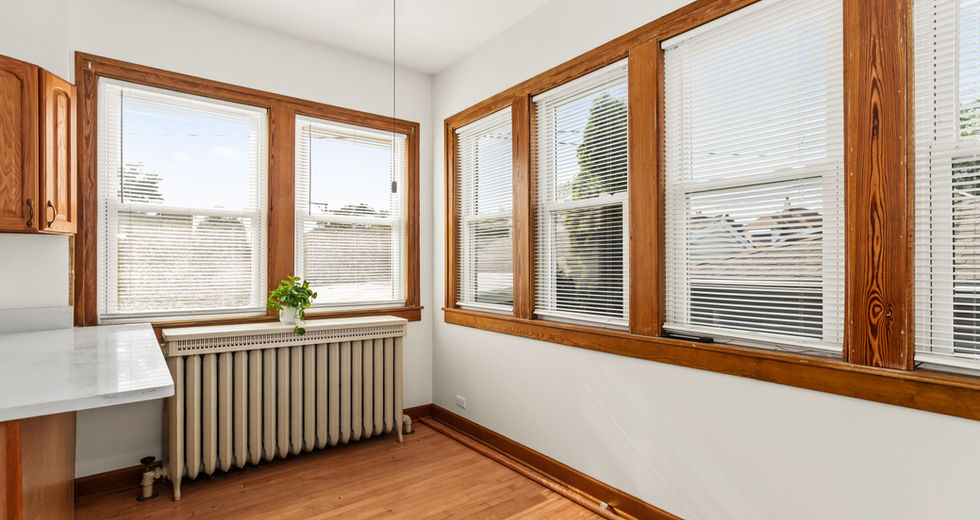 Gorgeous 3 bedroom/2 bath Blonde Bungalow with all of the original features AND modern conveniences. Beautiful refinished original hardwood floors, lovely crown moulding woodwork, built-ins, and art glass. Light and bright living room with gas fireplace and original shelves flanking each side accented by original art glass. The separate dining room is generous space for family gatherings. The huge eat-in kitchen was recently updated but kept the pantry and original spice rack/ironing board cabinet. 3 large bedrooms on the main floor with plenty of room to grow as the unfinished attic is ready to become a primary suite plus! The full finished basement has plenty of space for recreation and a guest room. There is a already a full bath. Newer windows throughout most of the home. New tear-off roof (2022) Radiant heat and central AC. Newer two-car garage with front and back overhead doors (2000), plus a carport for a third car or covered patio space.